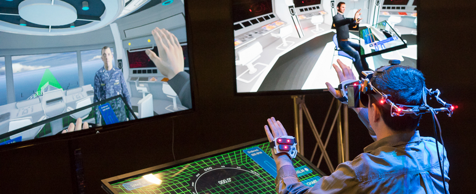 With the help of Phasespace motion capture technology, the Institute for Creative Technologies at the University of Southern California developed the Enhanced Environment for Communication and Collaboration, also known as Codename: Blueshark. The goal of Blueshark is to create a virtual environment where Navy recruits learn how to interact with future communcation and collaboration technologies, such as head-mounted and holographic displays.